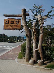 | Maybe it's Korea's Shamanist traditions that place changseung (totems) on guard at the entrances to towns and important places. The anatomically correct characters above watch over Seongyojang, the House of 100 Rooms. I guess part of their job is to make sure that no one gets in without paying the 5000 won (about US$4) admission fee. As an aside, that tariff shows you where inflation is headed in Korea. Back in 2000, each of us paid just 1000 won to get in. But Korea's per capita gross national income has increased too, from US$11,030 in 2000 to US$33,790 in 2019. So while Seongyojang's admission price is 4 times what it was in 2000, Korea's income is ... 3 times what it was then. I can't quite put my finger on it, but something seems a bit off there. |