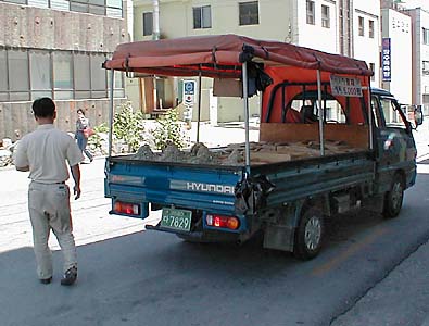 Most vendors use trucks. These snub-nosed pickups (you also see them in Japan and China) are versatile little guys. Their cargo beds are actually larger than those on big, gas-guzzling American pickups. Those beds are often piled high, with the drivers hawking anything from household goods to fresh chicken, fish, or vegetables. Some idle slowly through the neighborhoods, loudspeakers barking (Korea, as I've said many times in this photo album, is not a place for the person who loves peace and quiet). Others, like this one, set up shop on busy streets or near the marketplaces.
